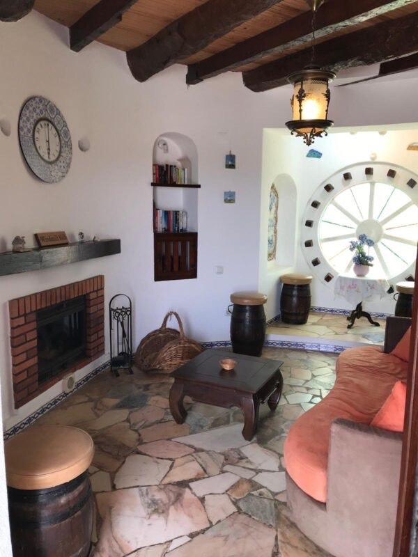 This unique property consists of an original windmill, with annexes and a pool, has an AL licence, and has provided the owners of a steady rental income since 2016. It is set on an elevated plot of approx. 1000 m2, with beautiful views of the surroundings. Walking distance to the center of Cercal, which has a good selection of cafes and restaurants, and only 15 km from the stunning beaches of the West Coast, this property has been renting out well over the last 10 years. It consists of: entrance gates into the grounds, with ample parking space. The mill itself has a cosy living area with woodburner, stairs down lead to a small bedroom with bunkbeds, a WC and a storage area. Stairs up to a double bedroom with shower room. The annex consists of an open plan living/dining/kitchen, with sliding doors to the terrace, and a pellet stove. There is one bedroom with a fitted wardrobe, a shower room with towel heater, and a storage area from the kitchen. Further kitchen area with sink, leading to the terrace. There are several outhouses, one of which has a washing machine, another is a wood store. The 8 x 4 meter pool has a salt water system.